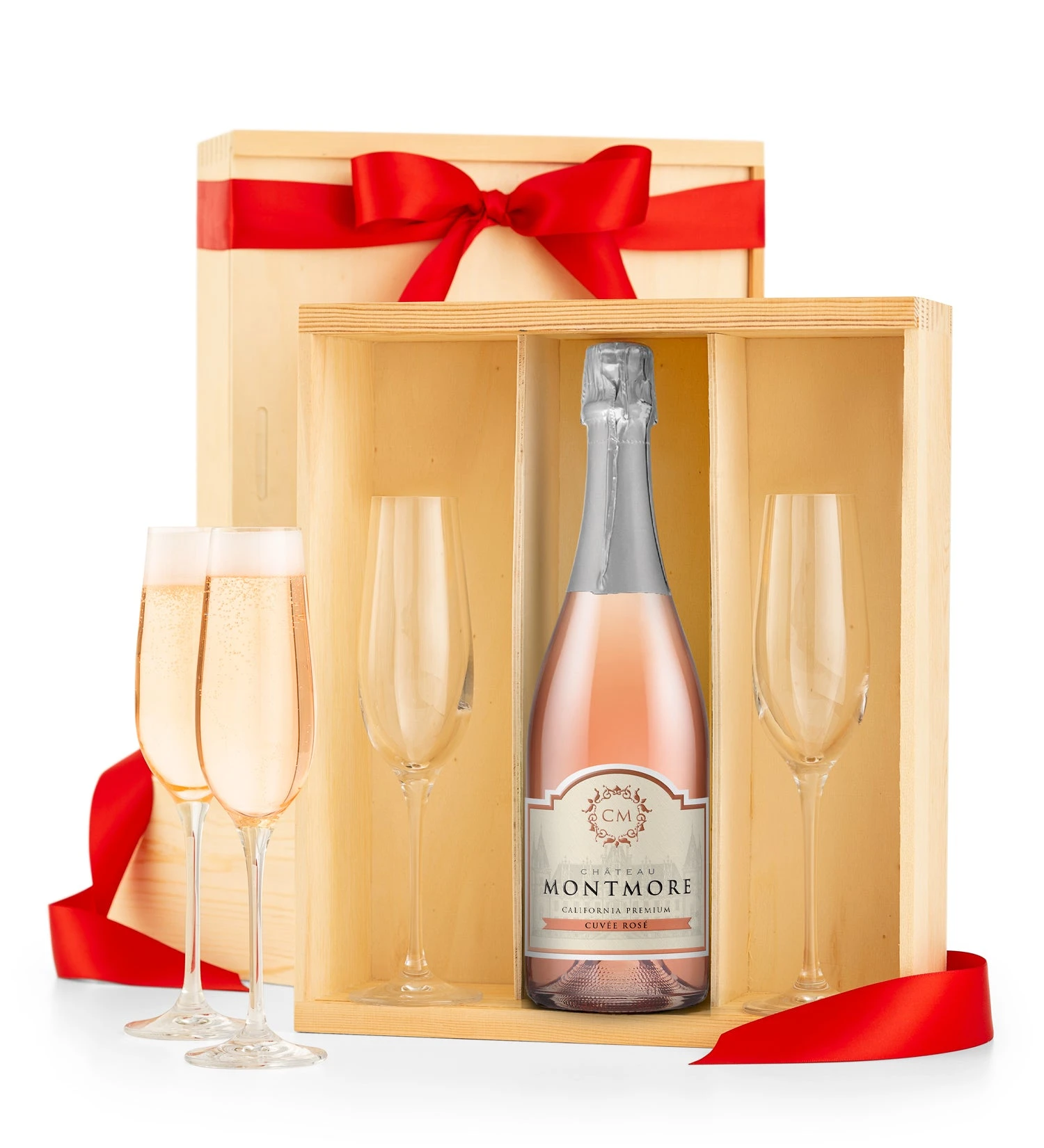For a special and meaningful celebration, the Keepsake Champagne Toast Crate gift is the perfect choice. This elegant gift contains all the items necessary to make a toast, including two toasting glasses, a wood keepsake crate, and a bottle of Chateau Montmore Sparkling Rosé. Celebrate in style while creating a lasting memory.