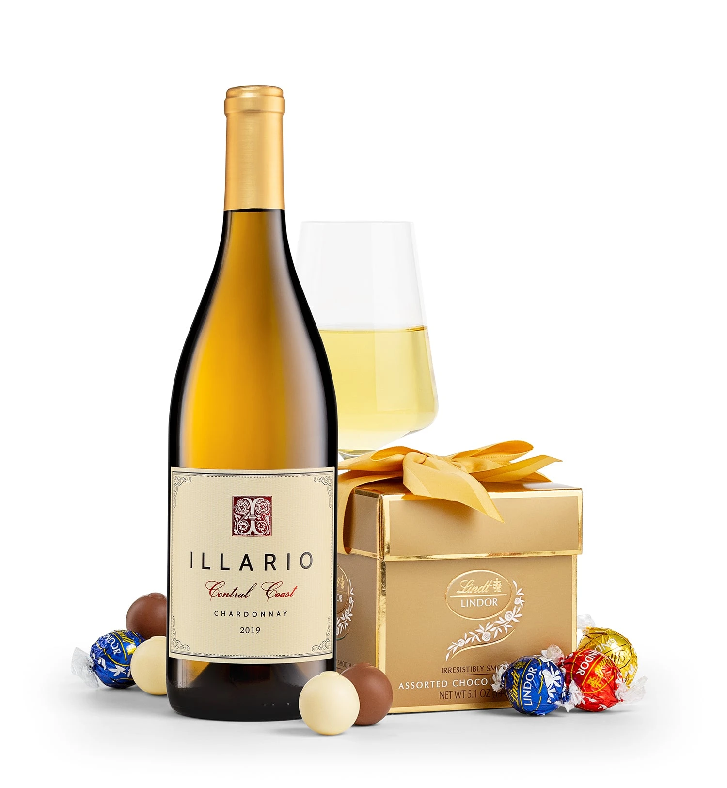 Delight chocolate lovers with a gift of the most popular flavors in this classic Lindt LINDOR Assorted Chocolate Truffles 12-piece collection with Illario California Chardonnay. Perfect for surprising friends and family, or for indulging in a luxurious after-dinner treat, this assortment features three irresistible flavors: Milk Chocolate, White Chocolate, and Dark Chocolate truffles. Each truffle offers a rich, smooth center encased in a delicate shell, making it the perfect way to savor a moment of pure chocolate bliss.
