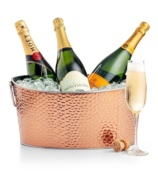 Housewarming gift, wedding gift . . . a great gift for any occasion! Perfect for cooling down cold drinks for any outdoor gathering. This aluminum chiller with a lustrous hammered copper exterior is perfect for keeping drinks cool at a party and serves as a stylish storage piece between gatherings! Add a wine bundle for the ultimate gift!