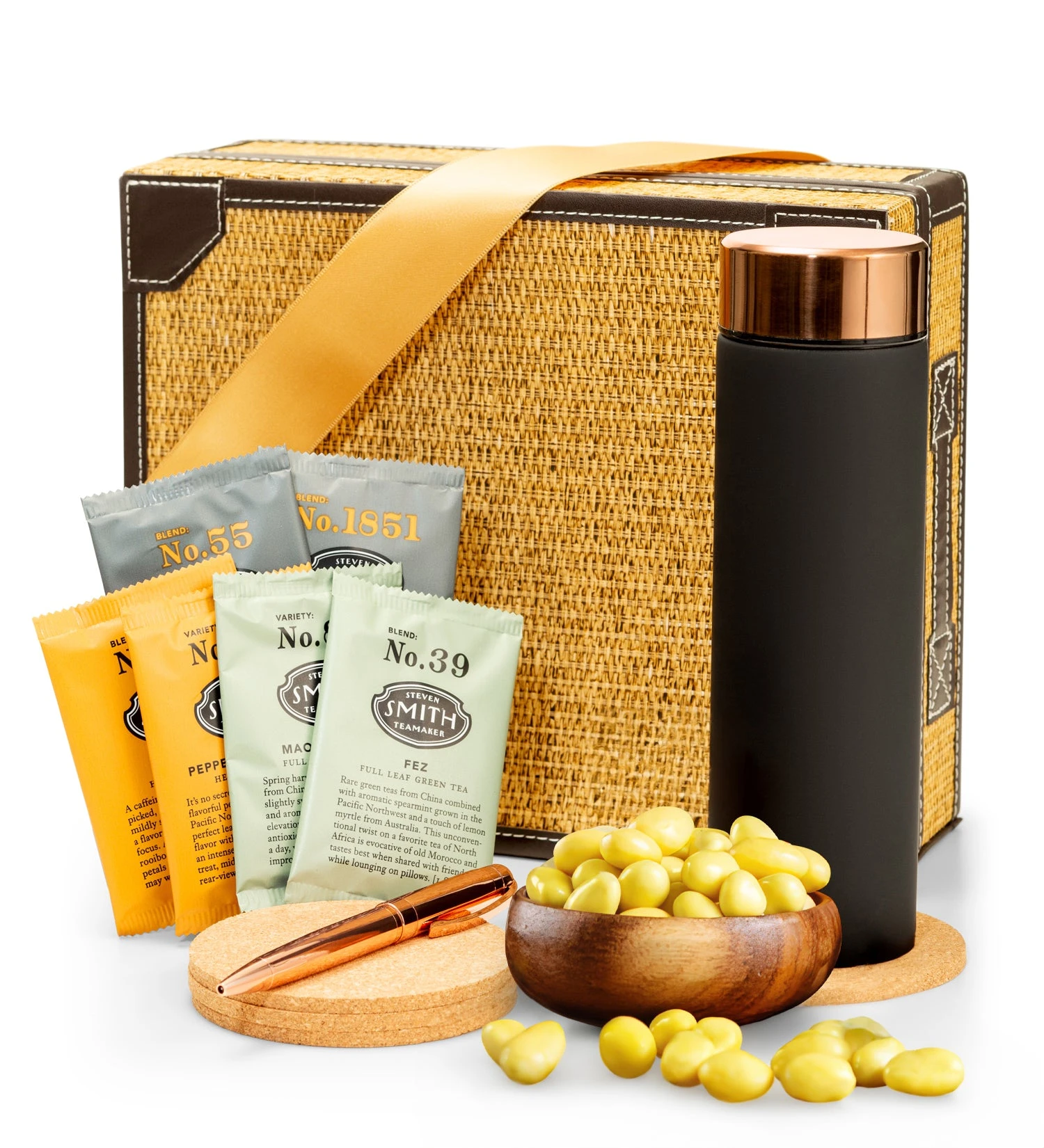 Elevate the workplace with this curated gift set. This handsome gift box is packaged with gourmet tea, a few stylish office essentials, and some Limoncello Almonds to sweeten the moment. Send this luxury gift set to your dedicated employees to promote a culture of professionalism and appreciation.