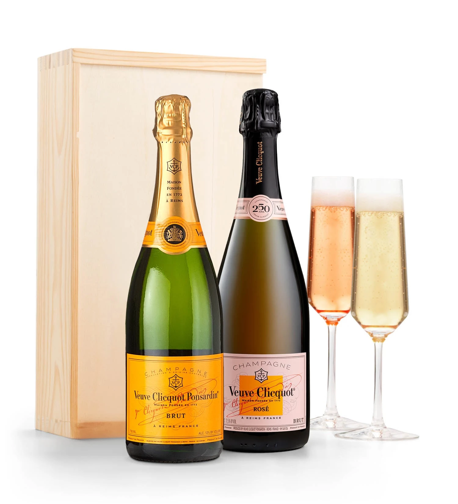 Indulge in the epitome of champagne excellence with the Veuve Clicquot Duo Champagne Crate, featuring the iconic Veuve Clicquot Yellow Label and the exquisite Veuve Clicquot Rosé Champagne. Housed in a stylish wooden crate, this luxurious ensemble is perfect for celebrating life’s special moments or gifting to someone deserving of the finest.