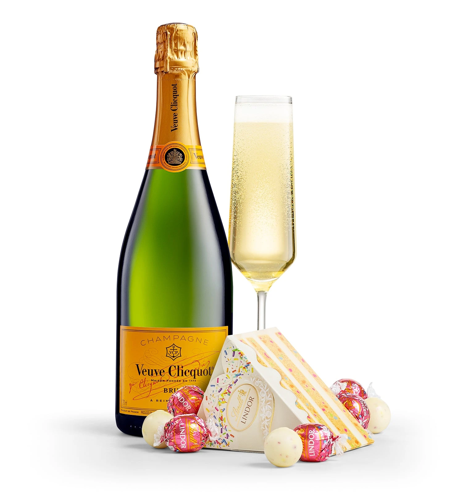 Elevate their birthday celebration with the perfect combination of luxury and indulgence! A bottle of Veuve Clicquot Champagne paired with the rich, velvety goodness of LINDOR Truffles Cake Box is a gift that brings joy and elegance to any occasion. The Veuve Clicquot Champagne pairs beautifully with a delightful box of Birthday Cake LINDOR Truffles, presented in a charming cake-shaped gift box.